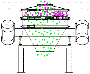 SYT系列三次元振動(dòng)篩的基本原理是利用電機(jī)軸上下安裝的重錘(不平衡重錘),將電機(jī)的旋轉(zhuǎn)運(yùn)動(dòng)轉(zhuǎn)變?yōu)樗?、垂直、傾斜的三次元運(yùn)動(dòng),再把這個(gè)運(yùn)動(dòng)傳遞給篩面,使物料在篩面上做外擴(kuò)漸開線運(yùn)動(dòng),故該系列振動(dòng)篩又被稱之為旋振篩。該系列振動(dòng)篩具有物料運(yùn)行的軌跡長(zhǎng),篩面利用率高等優(yōu)點(diǎn),調(diào)節(jié)上、下兩端重錘的相位角,可改變物料在篩面上的運(yùn)動(dòng)軌跡可以對(duì)物料進(jìn)行精篩分、概率篩分等。