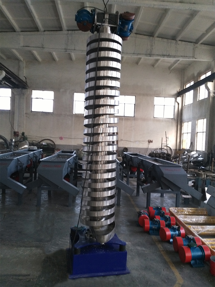 垂直振動提升機采用振動電機作振動源,利用兩臺振動電機的合成振幅,將物料沿螺旋輸送槽向上輸送。主要用于提升顆粒狀、粉狀、塊狀物料。除具有從下向上提升物料外,還可以完成對物料的干燥和冷卻。分為敞開式、封閉式兩種結構。并可按照用戶需要進行特殊設計。